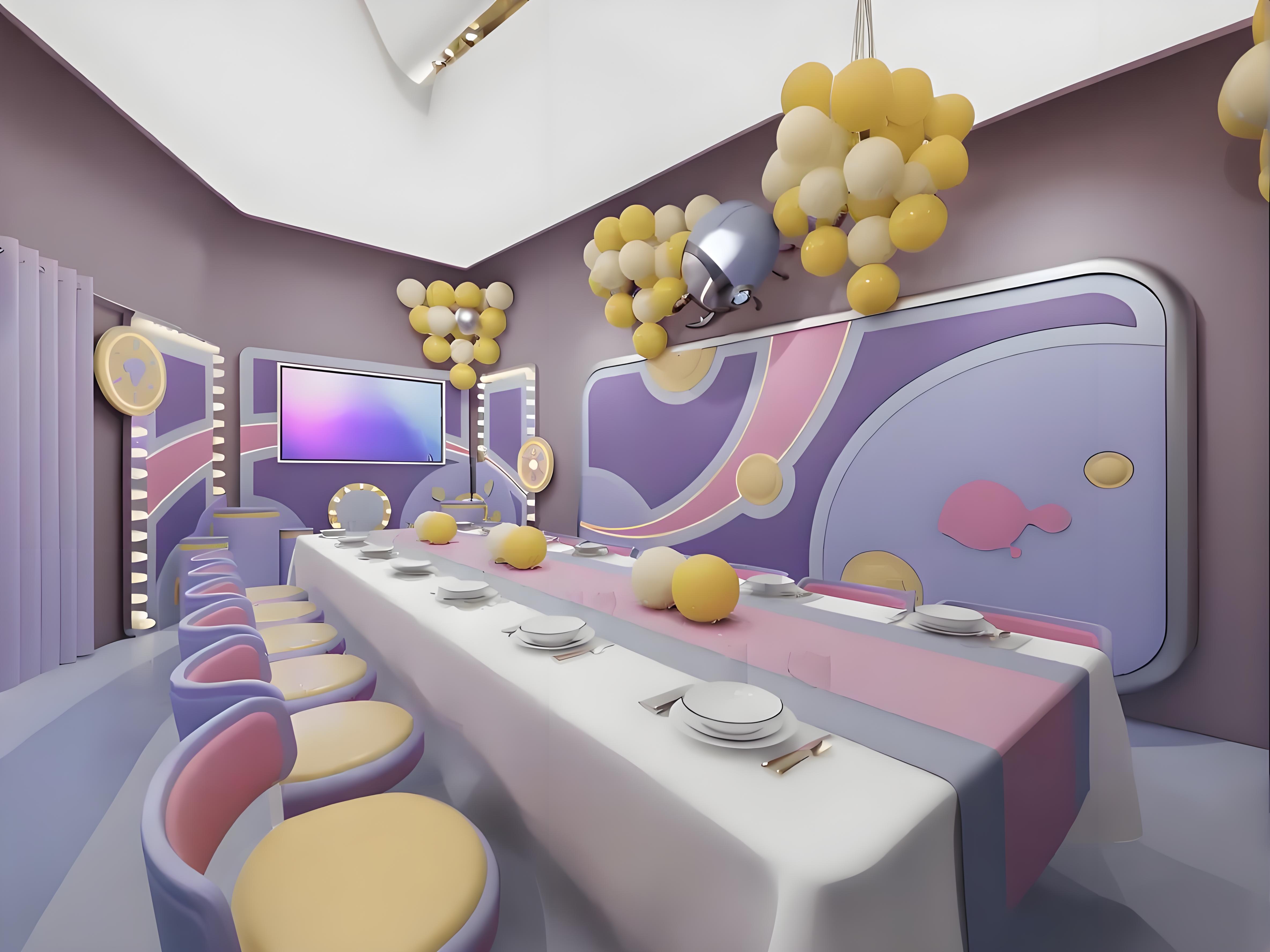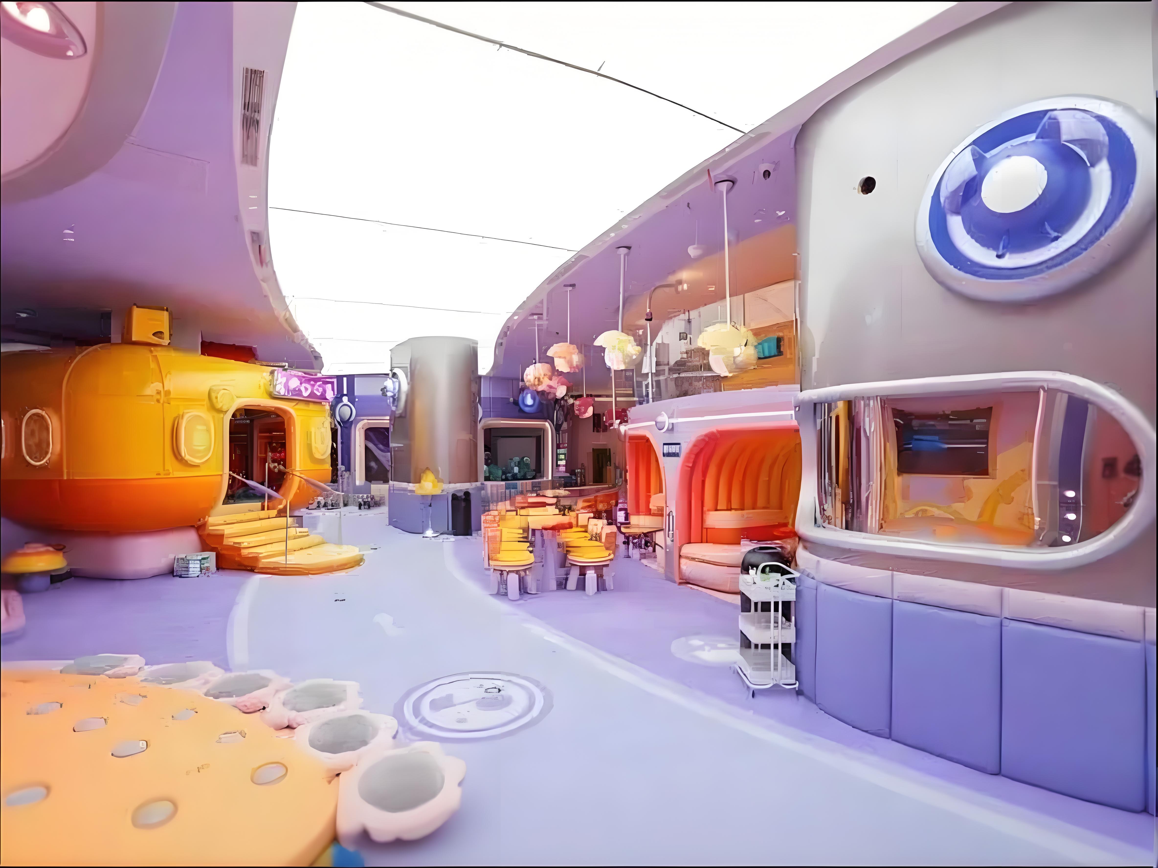 空间设计‌:2500㎡挑高空间,莫兰迪色系与星际主题结合,营造梦幻视觉效果。